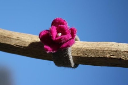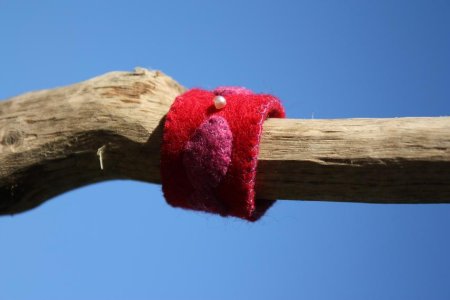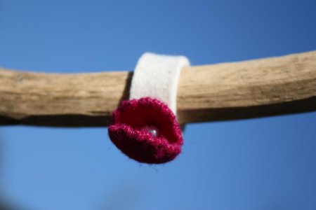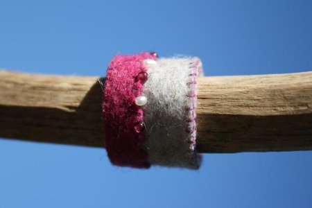 Kronenring, Wolle mit Granat- + Süßwasserperlen