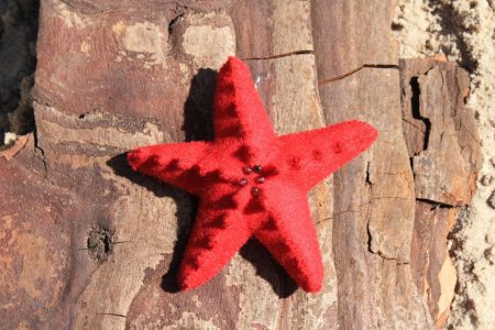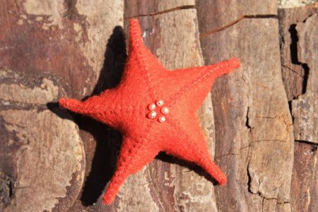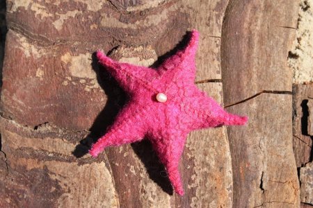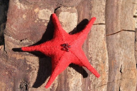 großer vielzackiger Seestern, Wolle mit Granatperlen großer 3-Zacken Seestern, Wolle mit Süßwasserperle